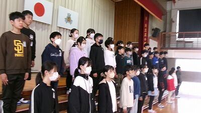 2月26日(木)、2回目の卒業式練習の日でした。この日は5年生も一緒に参加しました。式にふさわしい振る舞いや姿勢など基本的な確認をし、「別れの言葉」を中心に練習です。立ったり移動したりするタイミングを繰り返して確認できました。卒業生と在校生代表の5年生の心のこもった式典をめざしてまいります。