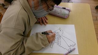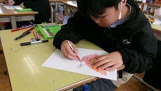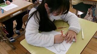 3月3日(火)、4年生が6年生へのメッセージカードを作成中でした。今週金曜日はお別れ遠足です。お別れ集会で6年生に渡すプレゼントのようです。