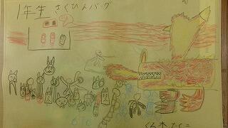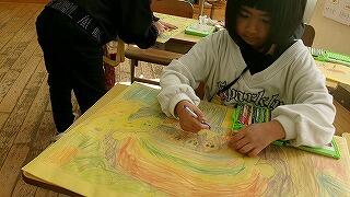 1年生が作品を入れるバッグに絵を描いて自分だけのバッグを完成させました。