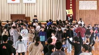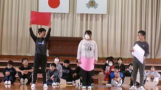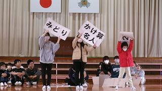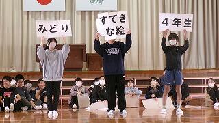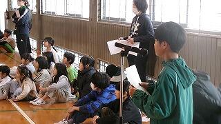 3月6日(金)は、お別れ遠足でした。お天気が怪しいため、校内で実施することになりました。はじめに体育館で、運営委員会の企画で、卒業間近の6年生と全校児童とのお別れ集会を開きました。みんなでゲームを楽しんだり、各学年から6年生へ寄せ書きのプレゼントをしたりしました。最後に6年生からお礼の言葉の贈り物でした。下級生たちのよいところをアイデアいっぱいに発表してくれました。