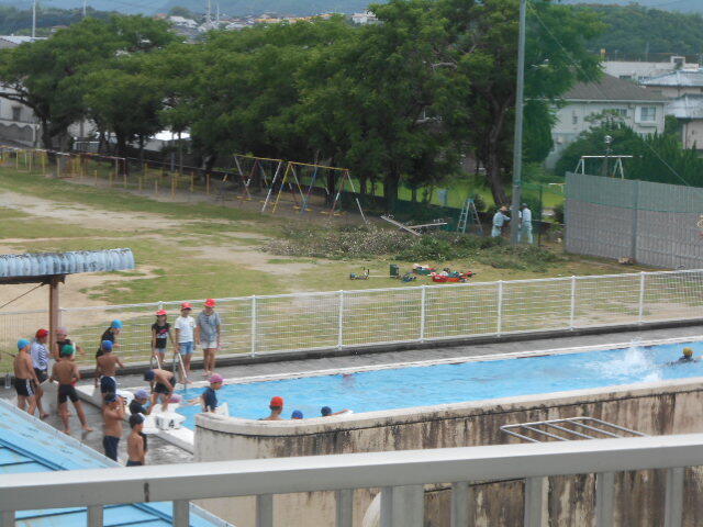 5年生は、ビート板を使ったり、補助具なしで泳力向上を行っていました。20日までが水泳指導期間ですので、水泳指導はあと2日になりました。