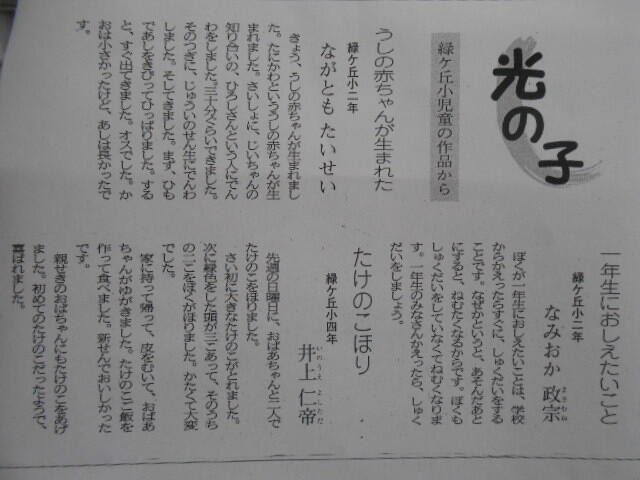 さて、地元紙夕刊デイリーに、子どもたちの作品が掲載されました。中には「たこが、山を越え、雲に吸い込まれそう・・・」と表現豊かなものもあって、日頃の保護者の皆さんがしてくださる、「読み語り」の効果だろうかと、嬉しくなりました。今朝は、嬉しいことから始まりました。