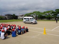 6月9日(木) 自動車学校の方を講師に招いて交通安全教室がありました。高学年では、まずシミュレーターを使っての自転車の乗り方指導がありました。次に、ダミー実験です。飛び出した子どもが車にはねられるとどうなるか。人形とはいえ、目の前で起こった光景に子どもたちは衝撃を受け、その後の横断歩道での訓練も真剣に取り組んでいました。毎年繰り返し行う学習ですが、自分の命を守る行動ができる人になってほしいものです。