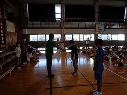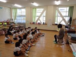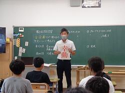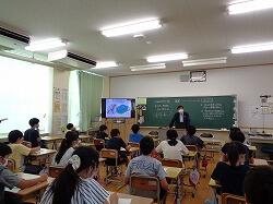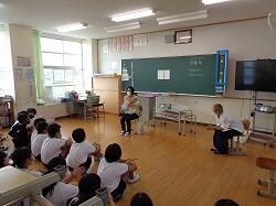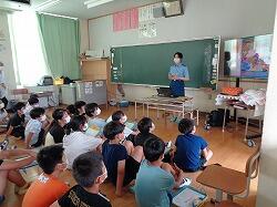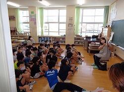 6月15日(水) ふるさと先生としてスポーツインストラクターの方が来られ、6年生に話をしてくださいました。たくさんのスポーツジム等を掛け持ちされて、大変アクティブに活動されている先生が、何をモチベーションとして頑張っておられるかなどを話してくださいました。また、実際に体を動かしながら体を動かすメカニズムについても説明してくださいました。難しい動きでも、繰り返していれば神経が発達しできるようになるという説明に、難しいこともあきらめないで頑張ってみようと思った子どもたちでした。前向きに生きるすばらしさを教えてくださったすてきなお話でした。