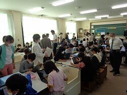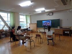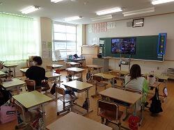 また、今回の参観日は、コロナウイルスも再拡大をしており、暑さも厳しいと言うことで、密にならないようにサテライト会場を設け、別教室でも参観授業の中継を見ることができるようにしました。便利な世の中になったものです。