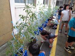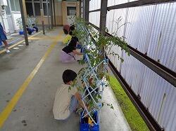 生活科で1年生はアサガオを2年生はミニトマトを育てています。今朝は2年生がミニトマトに水をあげたり追肥をしたりしていました。毎日しっかりとお世話をしているおかげで、たくさんのミニトマトが実り、色づいていきました。真っ赤に熟れたものを食べられるのももうすぐで、子どもたちはとても楽しみにしています。1年生のアサガオも毎日たくさんの花を咲かせています。植物を育てることを通して、生命の尊さも感じていることでしょう。