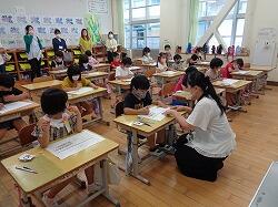 6月7日(火) 1・2年生のお話会がありました。保護者を中心とした図書ボランティアの方々が、定期的に学校で読み聞かせをしてくださいます。今日もたくさんの絵本などを読んでいただき、子どもたちはとても楽しそうでした。20日(月)からは、図書委員会が企画した「読書祭り」も開かれます。たくさん本を読んで心を豊かにしていってほしいものです。