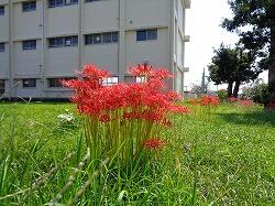 校舎の裏には、今年も彼岸花が咲きました。普段は全く気配を見せなかったのに、この時期になると一気に出てきて見事な花を咲かすのですから素晴らしい生命力です。校舎の裏にあるので、気付いていない子どもたちがいるかもしれません。季節の移ろいにも敏感な子どもたちを育てていきたいものです。