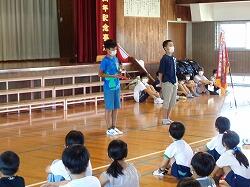 7月29日(金)1学期の終業式があり、ほかの地区に1週間遅れて延岡市もようやく夏休みに入ります。終業式は、感染症や暑さ対策のためオンラインで実施しました。3年生と5年生の代表児童が一学期を振り返り、自分の目標に対する成長の実感をしっかりと発表してくれました。意見発表児童の一人が欠席でしたが、前もって撮っておいたビデオで参加しました。校歌伴奏もビデオで撮り、対面で実施するよりも子どもたちの活躍をしっかり披露ことができました。校長からは、「ありがとうがいっぱいのおうち」ということで、夏休みには家の仕事に積極的に取り組んでほしいという話がありました。生徒指導担当からは、命を大切にしてほしいという話があり、子どもたちは真剣に聞いていました。