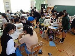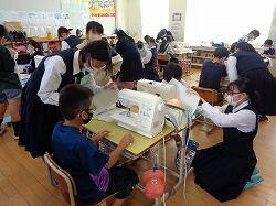 10月14日(金)延岡工業高校生活文化科の生徒のみなさんが、5年生の家庭科授業支援に来てくださいました。ミシンを使ってナップサックを作る授業です。生徒のみなさんがとても丁寧に優しく教えてくださったおかげで、子どもたちはとても楽しそうににこにこしながら作業を進めていました。近くにある学校ですので、これからも連携をとっていきたいものです。