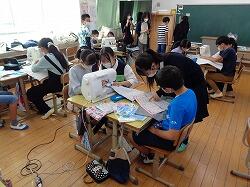 10月13日(木)6年生の社会では、「長篠の戦い」について学習していました。タブレットを使って当時の絵をじっくり観察し、気付いたことから織田信長がどのように力を付けていったかについて考えていきました。中には、自分で購入した歴史の本を持ってきて、みんなが知らないような情報を教えてくれる歴史好きの児童もいました。歴史は、調べれば調べるほどおもしろく感じるものです。歴史博士がたくさん生まれてきてほしいですね。