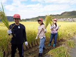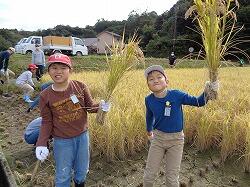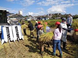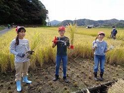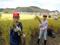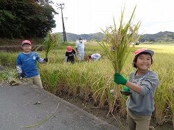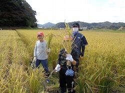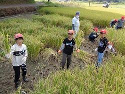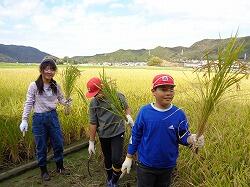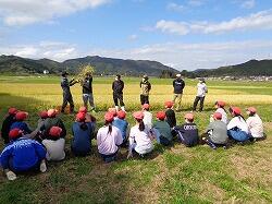 10月21日(金)5年生が稲刈りをしました。6月に植えてしっかりと育った稲をJAの方の指導をいただきながら刈り取っていきました。稲刈りは初めてという児童も多く、最初はうまくいきませんでしたが、だんだん上手になっていきました。児童が刈り取った残りは、コンバインであっという間に刈り取りました。その後、薬剤散布用のドローンやヘリコプターなどの実演もあり、農業機械の進歩にも子どもたちは驚いていました。最後に代表児童が、これからは、ご飯を食べるときにさらに感謝の気持ちを持ちたいと思いますと話してくれました。
