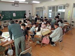 11月22日(火)今日は、1年生、2年生、3年生の参観日でした。1年生は、拾い集めたドングリや落ち葉などを使って工作し秋祭りを開いていました。それぞれが担当するお店にお家の方がお客さんとなって楽しそうに活動していました。2年生は算数の図形、3年生は国語の漢字の勉強をしていましたが、どの学級も教室に入りきれないくらいの人でした。特別支援学級の子どもたちも、保護者のみなさんに見守られながらはりきって授業を受けていました。きのう、下学年の子どもが何人も「先生!明日は参観日です。」とうれしそうに話しかけてきました。参観日は子どもたちを元気にするんだなあと改めて感じました。