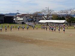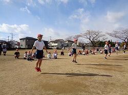 運動場では、子どもたちが2月10日(金)の持久走記録会に向けて持久走の練習をがんばっていました。今日は、5年生と2年生の合同体育でお互いに一生懸命応援しながら走っていました。記録会に向けて少しでも記録を伸ばして新しい自分をみつけてほしいと思います。