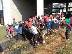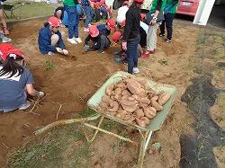 11月7日(月)2年生が生活科で芋掘りをしました。6月に植えたさつまいもが大きく育ちました。掘る前の授業では、掘り出したいもをどうするかをみんなで考え、わくわくした気持ちでつるを切り、マルチをはいで手で一生懸命掘っていきました。大物がたくさんあり、なかなか掘り出せずに苦戦する姿も見られました。思っていた以上の収穫に子どもたちは笑顔でいっぱいでした。