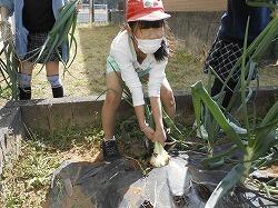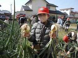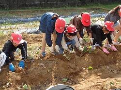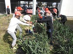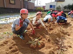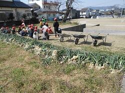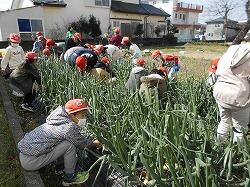 3月8日(水) 3年生が総合的な学習の時間に取り組んでいた延岡名産空飛ぶタマネギを収穫しました。10月に農家の専門家に来ていただいて植え付けをした後、こまめに水やりなどをして丁寧に育てていました。大きく育ったタマネギなので引き抜くのもひと苦労。でも、その分喜びも大きく、引き抜くたびに歓声が上がっていました。収穫したタマネギは、子どもたちが持ち帰るだけでなく、先生方にもお手紙付で配られました。取れたてのタマネギを味わいながら、食物を育てることの大変さと大切さを感じてくれたことでしょう。