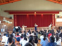 11月24日(木) みどりコンサートが開催されました。新型コロナの影響などでしばらく開催できませんでいたが、保護者を含む有志の方のご厚意で4年ぶりに開催することができました。ピアノ、バイオリン、クラリネット、コントラバスの4人の演奏は、優しく子どもたちの心に響きました。今回は聴くだけでなく、いっしょに楽しみましょうということで、1・2年生は、打楽器(打楽器になるものも)、3・4年生はリコーダー、5・6年生は歌でそれぞれ4人の演奏に合わせて参加しました。演奏された方のメッセージとともに5・6年生の歌った「いのちの歌」は、心にしみるものでした。音楽の力を感じたありがとうがいっぱいの時間となりました。
