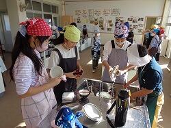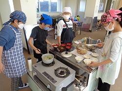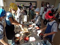 11月25日(金)5年生が調理実習をしました。感染症対策をしっかりしながら、ご飯とみそ汁を作りました。ごはんは鍋で炊きましたが、ほどよいおこげもあり、水加減もばっちりでした。みそ汁は、とうふとわかめが入っており、煮干しの出汁がしっかりきいてとても美味しく出来上がりました。自分でつくる大変さと、おいしさをしっかりと感じることができたようです。