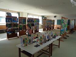 12月18日(日)のオープンスクールから22日(木)まで、3階多目的室で「みどりっ子美術展」が開かれています。全校児童の絵画や工作の作品が1点ずつ展示されています。今週は、各学級の鑑賞時間が設けられ、作品へのメッセージを書いて作製した児童に届けられます。力作揃いで子どもたちの想いが伝わってくるようです。
