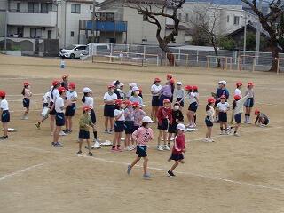 6年2組が企画をして、1年生といっしょに遊ぶ時間がありました。だるまさんがころんだやボール当てゲームをしましたが、6年生としては、どのようなルールにしてどんな力加減で、どんな声かけをすれば1年生に楽しんでもらえるか難しいところです。さらに、自分たちもいっしょに楽しむにはどうすればよいのか。相手の立場に立って考えるすばらしい機会です。6年生が工夫してくれたおかげで、1年生はほんとうに楽しそうで、笑顔があふれていました。6年生も普段以上に優しい笑顔がたくさん見られました。異学年で遊ぶことが少なくなった今の子どもたち。遊びは子どもたちにとって大切な学習の場であることを再確認しました。