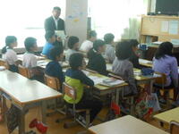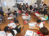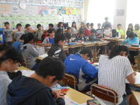 気持ちよく過ごせた一日でした。中央に写っているのが中学校の先生です。5年生が行儀よく授業を受けていました。(5年生の部屋にも載せました。)