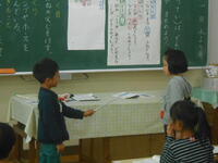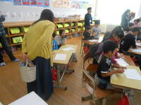 保護者の方も一緒に参加してくださった学級もあったようで、1年生で「箸の使い方」などをしていました。この機会ですから、教室の中で、教師と子どもたちのやり取りを聞いていただき、教師はどんな事を尋ねているのかな、子どもは何と答えているのかな・・等と家で指導してくださる時の参考にしていただいてもよいと思います。