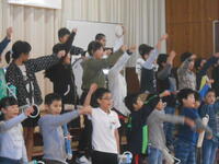 今日は、4年生が隣の幼稚園(ウルスラ幼稚園)の創立記念式典に参加し、エイサーを披露してお祝いしました。42名の子どもたちがステージに2列、ステージ下に2列、体育館の幅いっぱいに広がって、音楽とリズムに乗って見事に踊りきりました。観衆が300名ほどいたので、文字通り大舞台でした。他にも幼稚園児のダンスや高校生(ウルスラ学園高校)のダンスなどが披露されましたが、アップテンポのリズムに合わせて体で表現する様子を見て、4年生にもエイサーとは違ったリズムが刺激になったと思います。