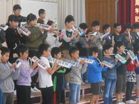 今日は、4年生が文化センターで開催された、市音楽大会に参加しました。体育館で全校児童に披露した時よりも、会場が広く大きい分、4年生らしさが十分に表現できたできばえでした。