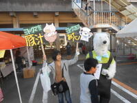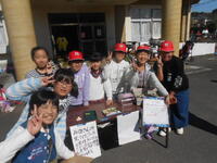 今日のバザーは、天気もよくて大勢の方々に来ていただきました。役員さん方、おやじの会の皆様等大勢のご尽力により盛大に進んでいました。また、緑小PTAのマスコットキャラクター「緑クマくん:みどくまくん」も積極的に会場を回って盛り上げてくれました。