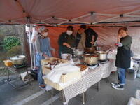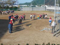 体育館の外では、地域の方々の行事で、餅つき披露や、綿菓子販売、ゲームコーナーなどが催され、まさに地域と一体になった時間が展開されました。おやじの会の方々も参加されていました。