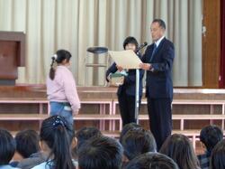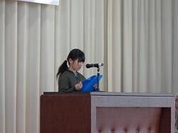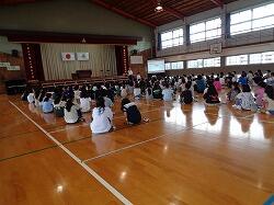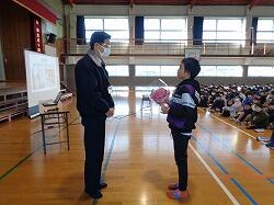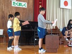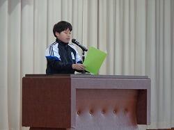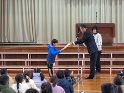 12月22日(金) 2学期の終業式が行われました。まずはじめに、児童代表で2年生と4年生が2学期にがんばったことや3学期の目標を発表してくれました。自分をしっかりとふり返った力強い発表でした。また、生徒指導の先生から冬休みの過ごし方についてお話しがあり、子どもたちも真剣に聞いていました。命を守る行動をしっかりして、安全で楽しい冬休みを過ごしてほしいと思います。表彰を受けた2名は、どちらとも県レベルのすばらしい表彰でした。みどりっ子たちの活躍や成長を感じることができた2学期でした。今日は冬至らしく体育館はとても冷込んでいましたが、子どもたちは最後までしっかりと話を聞くことができました。