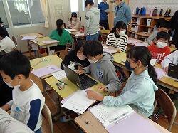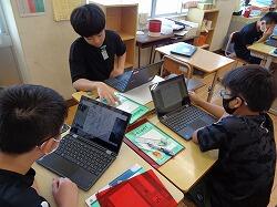 11月21日(火) 5年生で、総合的な学習の時間の研究授業が行われました。5年生はこれまで米づくりに関する探究学習を進めています。今日は、これまでお世話になった農家やJAの方たちに、どのように感謝の気持ちを表していくのかという話し合いでした。個人で考えた意見をグループで話しあい、さくさくとタブレットにまとめていく姿は、さすが高学年だなと思いました。