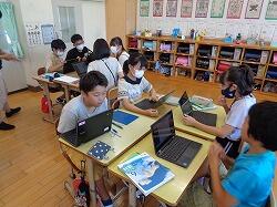 9月14日(木) 5年生が算数の授業でタブレットを活用していました。公約数を使ってどんな正方形ができるかを考える授業でした。子どもたちは、タブレットに送られた図をもとに考え、自分の考えを打ち込みます。それをみんなで共有して考えを深めていきました。短い時間で、何度も自分の考えを修正できることや、一度にみんなの考えを見ることができるのもタブレットのよいところです。タブレットやソフトも進化するでしょうが、それ以上に子どもたちが進化していくことでしょう。