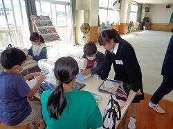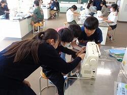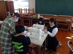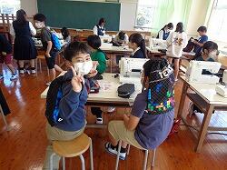 10月19日(木) 延岡工業高校生活文化科の生徒さんたちが来て、5年生にミシンを使ったナップサック作りを支援してくださいました。ミシンもたくさん持ち込んでいただき、使い方から、ナップサックの作り方まで丁寧に教えてくださいました。担任1人で行えば、ミシン指導にてんてこ舞いとなり、2~3週間はかかってしまうような学習なのですが、今日は3時間で作り上げることができました。子どもたちも高校生のみなさんが優しく丁寧に教えてくれるので、みんなにこにこしながら楽しく作業を進めていました。延岡工業さんには、毎年来て支援をしていただいています。子どもたちも、ミシンを使ったものづくりの楽しさを実感できたことと思います。ほんとうにありがとうございました。