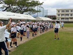 10月6日(金) 今年初めての全校体育がありました。今日は主に開会式の練習でしたが、はじめての練習とは思えないような動きでした。特に団長を肇としたリーダーは、朝早くから練習もしていることもあって、しっかりと役割を自覚して、まさにリーダーとしての動きでした。