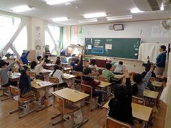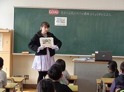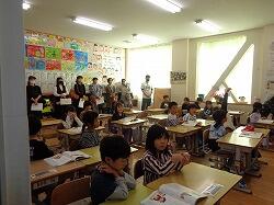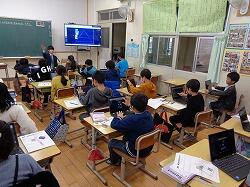 1月29日(火) 4年生の外国語活動では、学校の中の好きな場所を紹介する学習をしていました。ALTの先生と一緒に、発音を確認した後で、お互いに英語で紹介し合っていました。びっくりしたのは、ほとんどの児童が、学校のいろいろな場所を英語できちんと言えるし、自分の考えも文章できちんと表現できていることです。中には、質問に英語で質問を返す児童もいました。みんなにこにこ笑顔で取り組んでいる姿を見て、英語を通して、コミュニケーション力も育ってきているなと思いました。