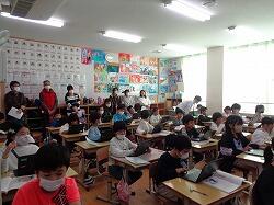 スクールサポートスタッフの先生が退職されました。約4年間にわたり、先生方の事務補佐として、印刷を始め様々な業務を丁寧に務めていただきました。子どもたちにも優しく接してこられたので、最後は6年生がすてきな手紙と共にお別れの挨拶に来てくれました。長い間ありがとうございました。