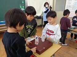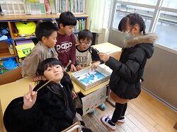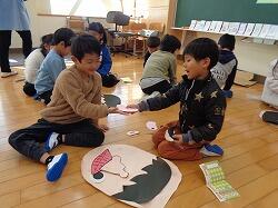 2月6日(火) 1年生が緑ヶ丘保育園の年長さんたちと交流学習をしました。先日、他の幼稚園との交流会をして2回目ということもあり、1年生は自信をもって取り組めていたようです。カルタ、福笑い、紙相撲、すごろくの説明やアドバイスも上手にできていました。最後は、年長さんから「たのしかった」「うれしかった」という言葉をもらい、1年生もとてもうれしそうにしていました。