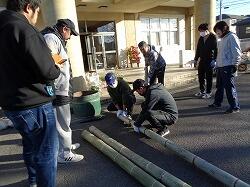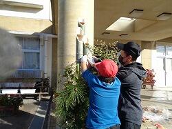 12月9日(土) おやじ会のみなさんが集まって門松づくりをしてくださいました。子どもたちの新年の健やかな成長を願って、毎年恒例の行事となっています。今年は、6年生を中心に児童数名も参加し、賑やかに作業が行われました。事前に北方まで行って竹を用意するなどして、午前中には立派な門松が出来上がりました。すっと伸びた竹が子どもたちの成長していく様子を表しているようです。おやじ会の皆様、参加してくださった方々ほんとうにありがとうございました。