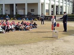 12月15日(金) 火災対応の避難訓練が行われました。理科室から出火の想定で、運動場に避難しました。「おはしも」の合い言葉を守り、すばやく避難することができました。消火器の使い方を学び、消防署の方から避難訓練の大切さを教えてもらいました。これから火事の多くなる季節です。命を守るためにしっかり行動できるようになりたいものです。