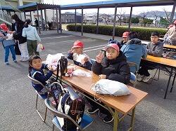 12月17日(日) オープンスクールとPTAバザーがありました。おとといの夏のような暑さから一転、真冬の寒さとなり寒風吹きすさぶ中の開催となりましたが、たくさんの方が来てくださいました。なわとび記録会は、個人の部と長縄が行われました。新記録を出して喜ぶ児童、目標の回数に届かず悔しがる児童、どの顔も一生懸命の結果でとてもすてきな表情でした。保護者のみなさんもたくさん見に来て、子どもたちの一生懸命な姿に目を細めておられました。校内では、児童の作品展やみどりコンサートの録画鑑賞コーナーもあり、子どもさんがいない学年の授業も含め、子どもたちのがんばっている様子をたくさん見ていただけたのではないかと思います。お昼からは、PTAバザーが実施されました。昨年に引き続き、事前注文品の引き渡しという形でしたが、おやじ会のみなさんもたこ焼きとフライドポテトの販売をして盛り上げていただきました。PTA執行部、バザー委員の皆様、おやじ会の皆様、ずいぶん前から準備に奔走していただき、ご苦労も多かったと思いますが、おかげでたくさんの笑顔がみられました。ほんとうにありがとうございました。