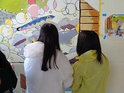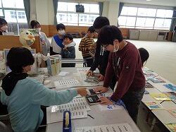 2月2日(金) 5年生が図工で壁掛けの仕上げをしていました。先月から電動糸のこで形を整え、自分の好きなデザインや絵を描いてつくってきました。今日は、仕上げのひもを付ける作業をしていました。糸を使う際に協力し合いながら作業を進めたり、出来上がった作品をお互いほめ合ったりと、みんなで協力する姿も見られました。出来上がった作品は、ホワイトボードとしても使えるので、各家庭で活躍すると思います。
