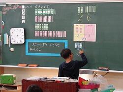 1月11日(木) 冬休みが明けてまだ3日目ですが、子どもたちはすっかり学校モードになって頑張っています。1年生の算数の授業をのぞいてみると、二桁の数字の表し方を勉強していました。勢いよくぴんと伸ばして手をあげてたくさんの児童が発表していました。さらに、前に出て説明する児童もいたり、その説明に反応する児童が多かったりと、4月の入学時からものすごく成長している姿を見ることができました。2年生に向けての準備がしっかりとできています。