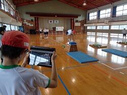 1月19日(金) 6年生の体育では跳び箱の授業が行われていました。今日は「かかえこみ跳び」です。6年生は、お互いにアドバイスをしたり、タブレットを使って撮影してふり返ったりしながら、自分たちで工夫して取り組んでいました。最後のふりかえりもタブレットに入力していました。何に取り組んだか、どう工夫して何を考えたかや跳んだ動画も記録できるので、これまでの足跡をふり返りながら授業を進めることができます。ささっと使いこなす姿はさすが6年生だなと思いました。