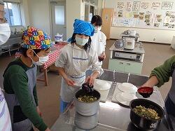 11月20日(月)5年生が家庭科の調理実習でごはんとみそ汁を作りました。コスモスプロジェクトボランティアの方4名も参加して、子どもたちにアドバイスをしてくださいました。ごはんは鍋で炊きましたが、もちもちでとても美味しく炊きあがっていました。みそ汁もとてもおいしく、こんな朝食を食べたら元気が出るなと思いました。ぜひ、家庭でも実践してほしいと思います。