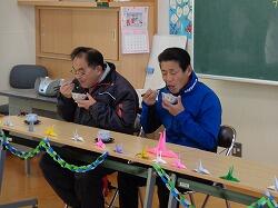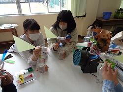 2月16日(金) 6年生がものづくり体験をしました。「野口 遵」顕彰会から講師を招いて、理科で風力発電機づくりをしました。ペットボトルを使ってプロペラと土台をつくり、発電機を取り付けて発光ダイオードを照らすというものです。さすが6年生、あっという間に作り上げて見事に発光ダイオードが点灯していました。最近は、子どもたちがものをつくったり分解したりという体験をあまりしていないように思います。そんな中で、ものづくりの楽しさや環境に配慮したエネルギー開発への興味を高めるすばらしい体験だったと思います。