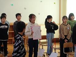 1月26日(金) 5年生が、総合的な学習の時間の田植え、稲刈り体験でお世話になった方への感謝の会を開きました。まずは、収穫した餅米を使った山菜おこわでのおもてなしです。午前中からみんなで準備して作りました。つくる苦労を知っている餅米で作った山菜おこわは絶品でした。参加された方々もおいしい!と大絶賛でした。次に、米づくりで学んだことや感謝の気持ちを詩や作文、短歌で発表し、最後は「365日の紙飛行機」の替え歌にしてみんなで歌いました。あとわずかで最高学年を迎えるにふさわしい立派な態度とチームワークでした。参加された皆様から温かい言葉もいただきました。米づくり体験から、米のつくり方だけではなく、人として大切なことも学んだことが分かるすばらしい会でした。