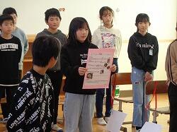 12月19日(火) 運営委員会の児童が先日募金活動をして集めた募金を社会福祉協議会の方に引き渡しました。子どもたちの思いが、いろいろな形で人助けにつながることになるということで、中心になって活動した運営員会の児童たちは満足そうな笑顔を見せていました。