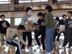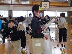 2月2日(金) 節分前日の昼休み、6年生企画の「豆まきパーティ」が行われました。これは、何か楽しいことをして緑小を盛り上げていこうという思いをもとに、6年生が自分たちで考えました。「悪口鬼」「ふざけ鬼」「さぼり鬼」「おこり鬼」に扮した6年生めがけて、新聞紙でつくった豆代わりのものをなげつけ、心の中の鬼を追い出そうというものです。短い時間でしたが、多いに盛り上がりました。こんな企画力のある6年生がいる緑小には悪い鬼は来ないでしょうね。