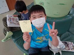2月5日(月) 今日の昼休み、図書室には貸し出し手続きを待つ行列ができました。図書委員会がお昼の放送で、「今日、本を借りるおとおみくじがひけます!」とお知らせしたものですから、たくさんの児童が本を借りに来たのです。おみくじは大吉からご丁寧に大凶まであるものですから、みんなおっかなびっくり引いて一喜一憂していました。さらに、図書委員会とじゃんけんをして、勝てばしおり、負けても借りられる冊数が増えるブックけんがもらえるなど、本を借りるだけで何度も楽しめる工夫がしてありました。どうにか本を借りる人を増やしたいという思いで考えついたアイデアだそうです。ナイス!図書委員会。